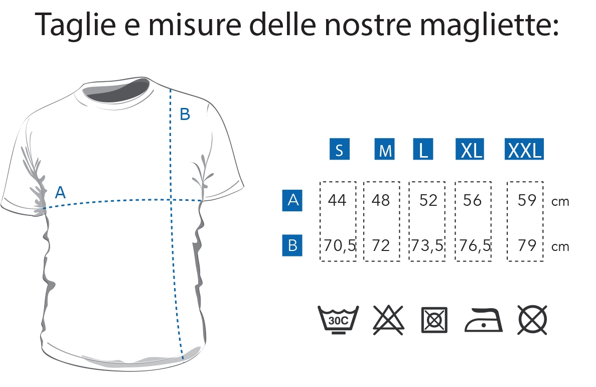 Posizione di stampa Fronte petto, fronte lato cuore, retro schiena, retro spalle, maniche